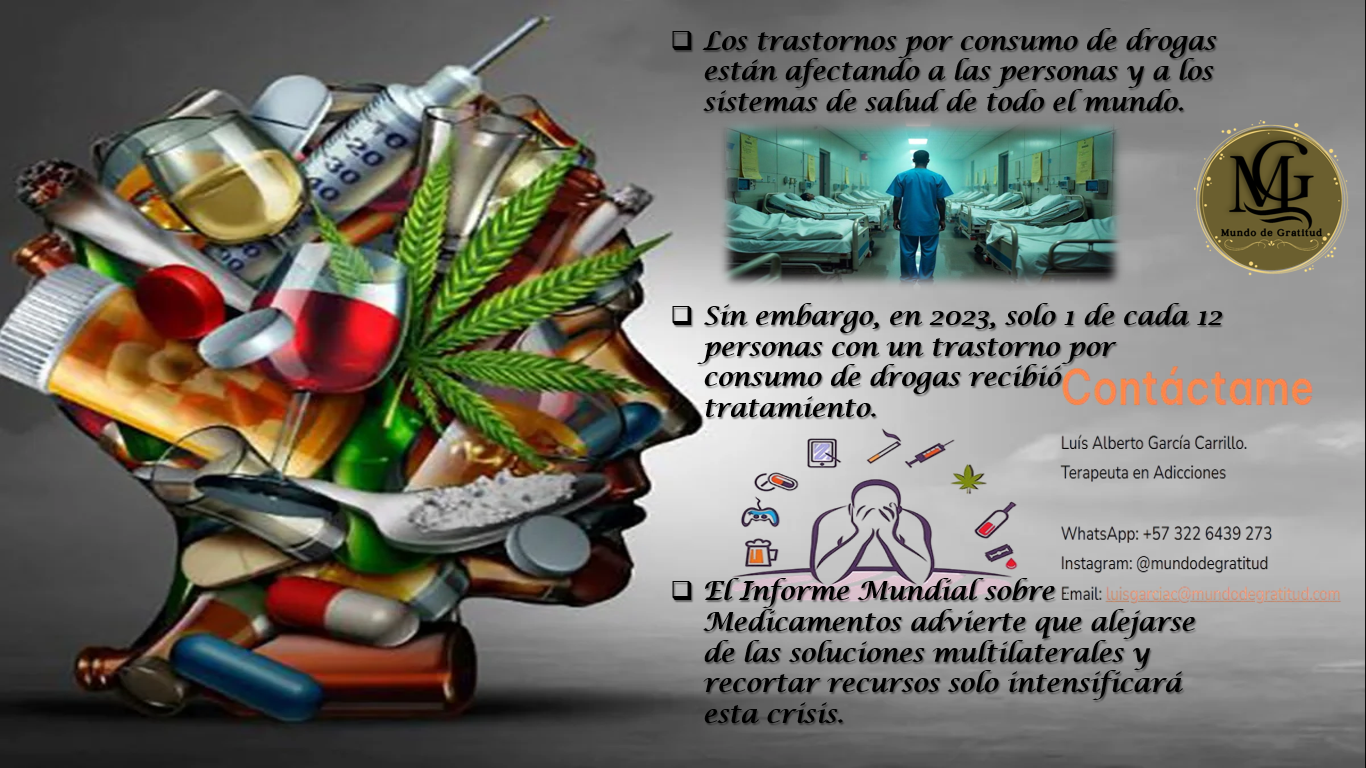 Bienvenidos a Mundo de Gratitud Con: Luis Garcia Terapeuta en Adicciones Saber más 4.8/5 Facebook Instagram +57 322 6439273 - luisgarciac@mundodegratitud.com ¡Conoce nuestro próximo seminario! “Heridas de la infancia y su impacto en la vida adulta” Saber más PATROCINADORES Trastornos del consumo de drogas Contáctame Luís Alberto García Carrillo.Terapeuta en AdiccionesWhatsApp: +57 322 6439 273Instagram: @mundodegratitudEmail: luisgarciac@mundodegratitud.com Contáctanos Contacto